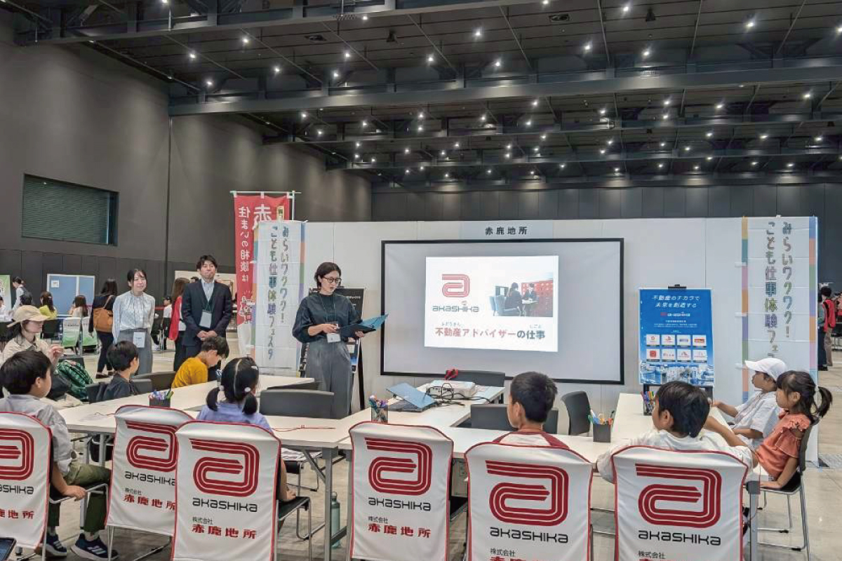 株式会社赤鹿地所(本社:兵庫県姫路市辻井1丁目1番23号、代表取締役社長:赤鹿 保生)は、2025年10月11日(土)に職業体験イベント「みらいワクワク!こども仕事体験フェスタ」に、不動産アドバイザーの職業体験ブースとして出展しました。