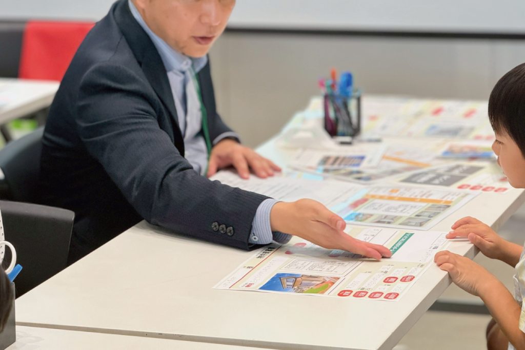 赤鹿地所のブースには多くの子どもたちが訪れ、お客様に最適な賃貸物件を紹介する「不動産アドバイザー」の仕事に熱心に取り組みました。